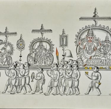 Across centuries, sacred imagery in India developed within temples, manuscripts, and domestic shrines. These works were created not for exhibition, but for presence — to anchor daily worship and communal memory.